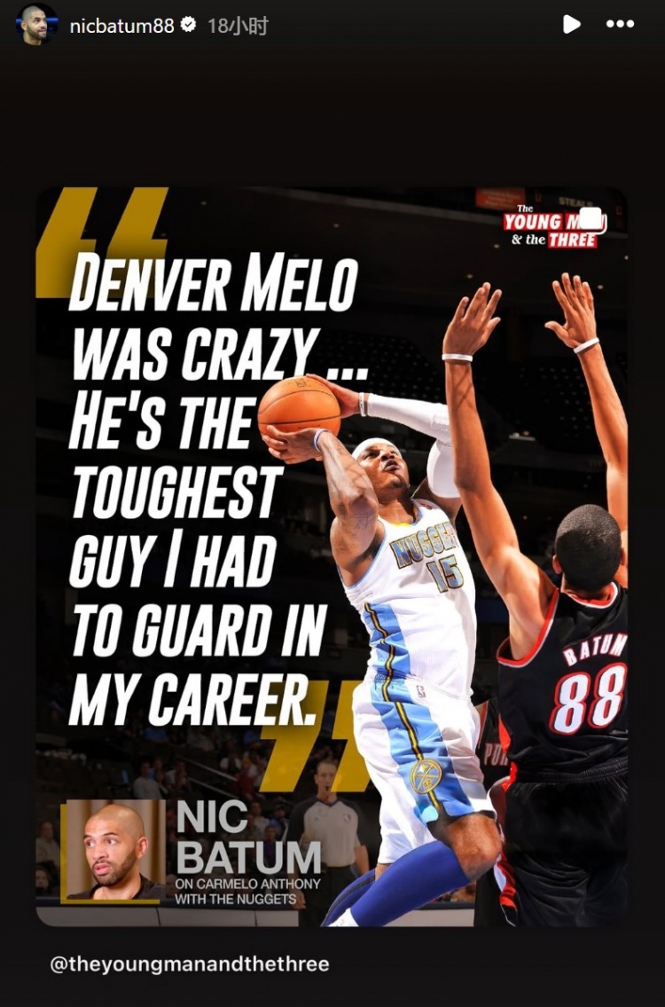 巴图姆:掘金时代的安东尼是我生涯最难防的对手 他太疯狂了