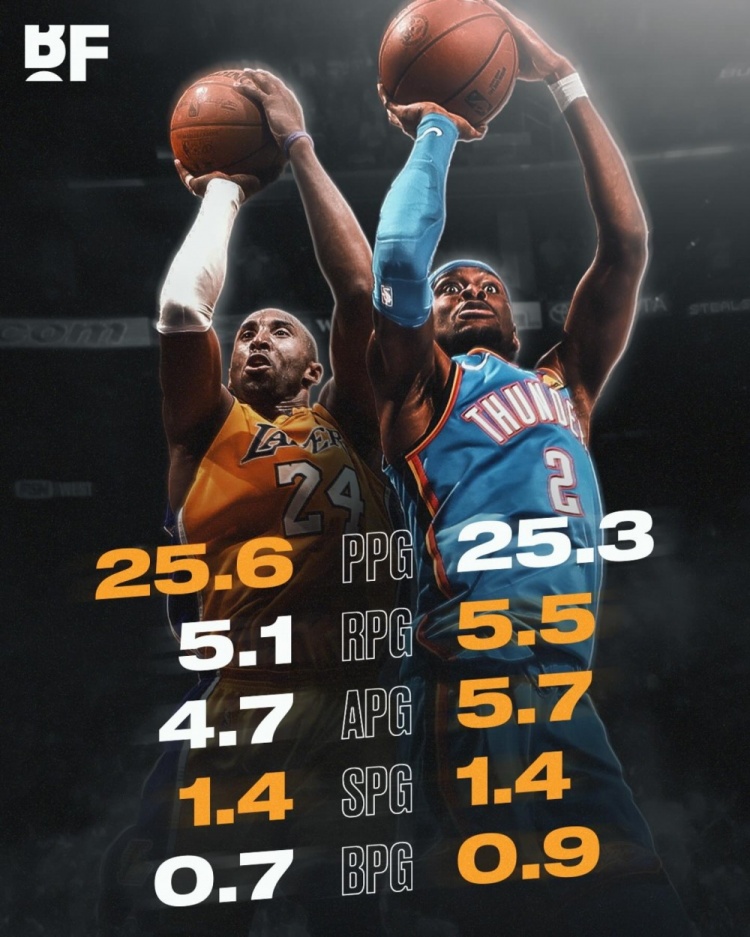 (科比生涯220场季后赛、亚历山大目前41场)相关新闻>>>SGA:希望有一天能成为科比那样的运动员 ...