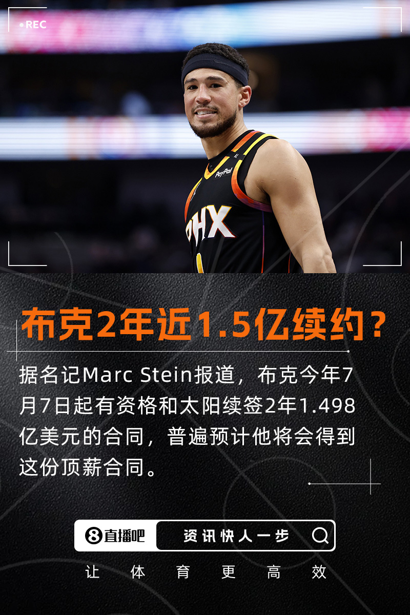 06月08日讯 据名记Marc Stein在专栏中透露,太阳球星德文-布克自7月7日起有资格获得一份2年1.498亿美元...