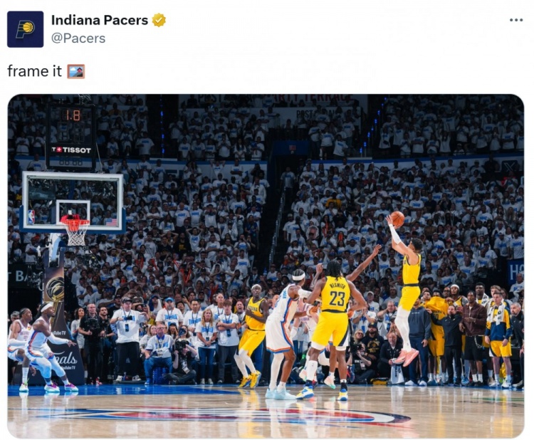世界名画!步行者官推晒哈利伯顿绝杀瞬间:裱起来🖼️