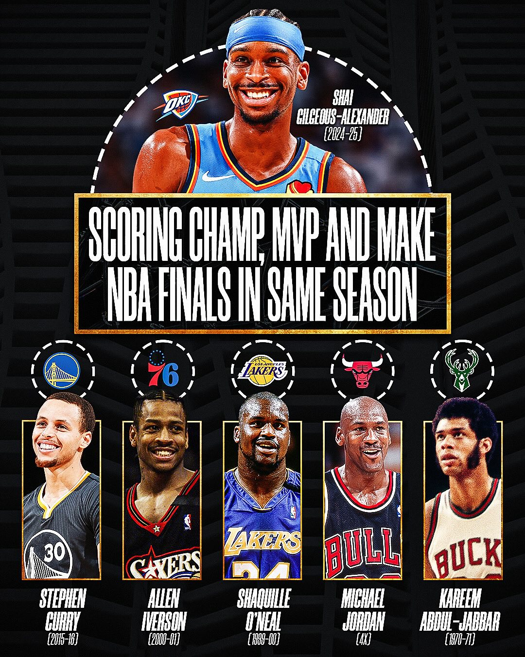 06月04日讯 根据数据统计,亚历山大成为历史上第六位在同一赛季中同时拿下得分王&MVP并打入总决赛的球员,比肩...