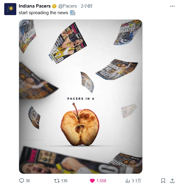 上嘴脸!🙈步行者官推晒“发霉苹果”嘲讽纽约