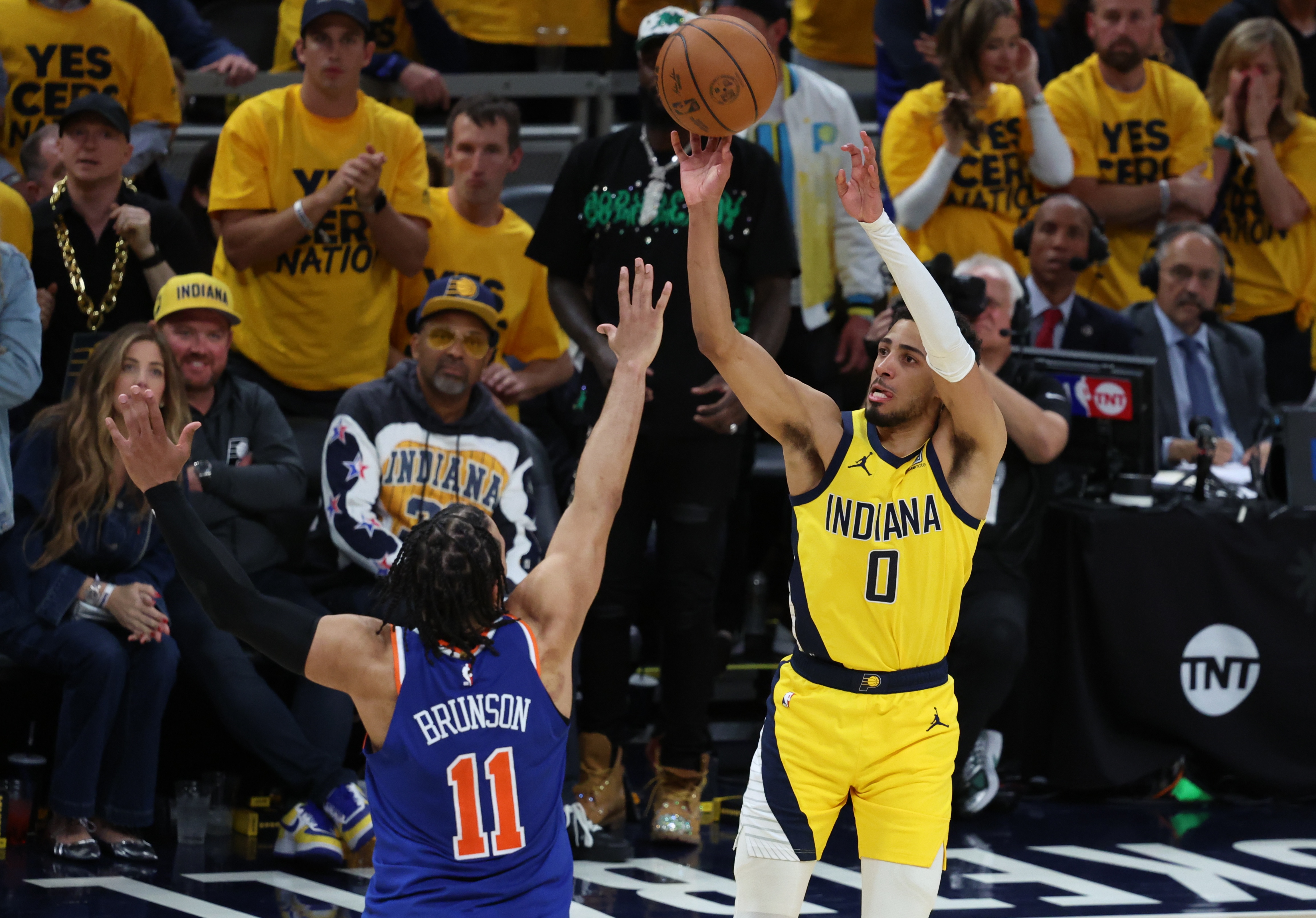 6月1日讯 NBA季后赛东决,步行者125-108击败尼克斯,大比分4-2杀进总决赛。赛后哈利伯顿接受了记者的采访。当被...