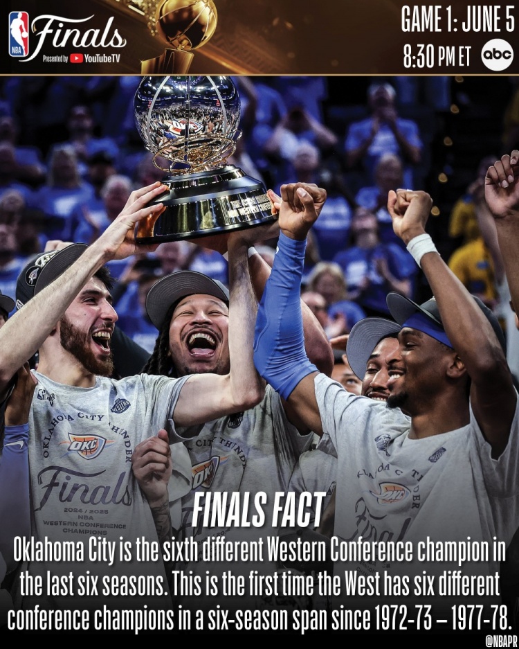 5月31日讯 本赛季雷霆夺得了西部冠军,这是联盟近6个赛季以来,所诞生的第6个西部冠军。据统计,这是联盟自1972-73...