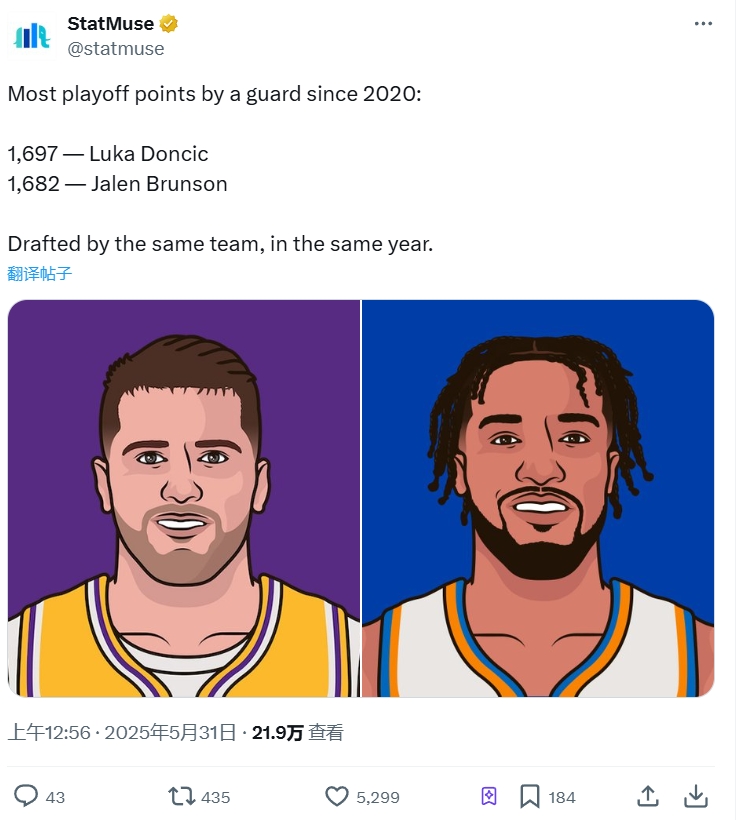 这俩合体得多强🤪20年以来季后赛得分前二后卫:东契奇 布伦森