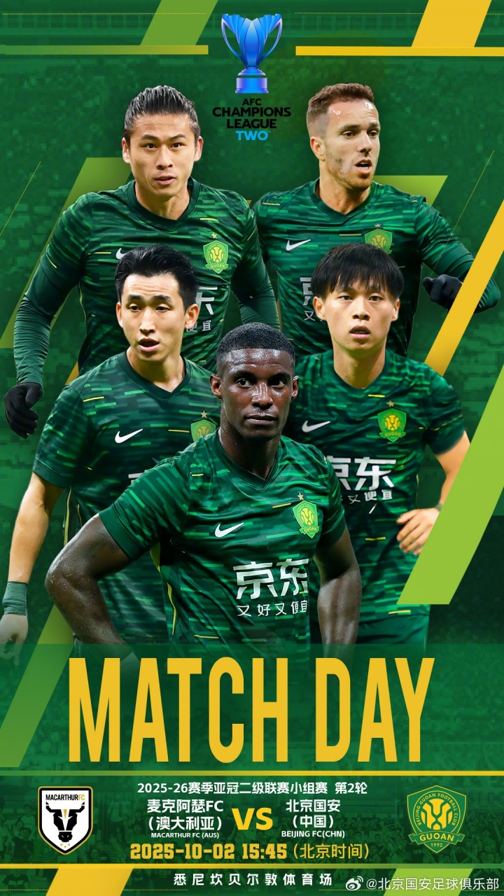 10月02日讯 25/26赛季亚冠二级联赛小组赛第2轮,北京国安客战澳超球队麦克阿瑟FC,赛前阵容公布,国安首发进行了轮...