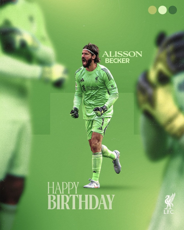10月2日讯 今天是利物浦门将阿利森的33岁生日,利物浦官方为他送上祝福。利物浦官方社媒晒出为阿利森制作的生日海报,配文...