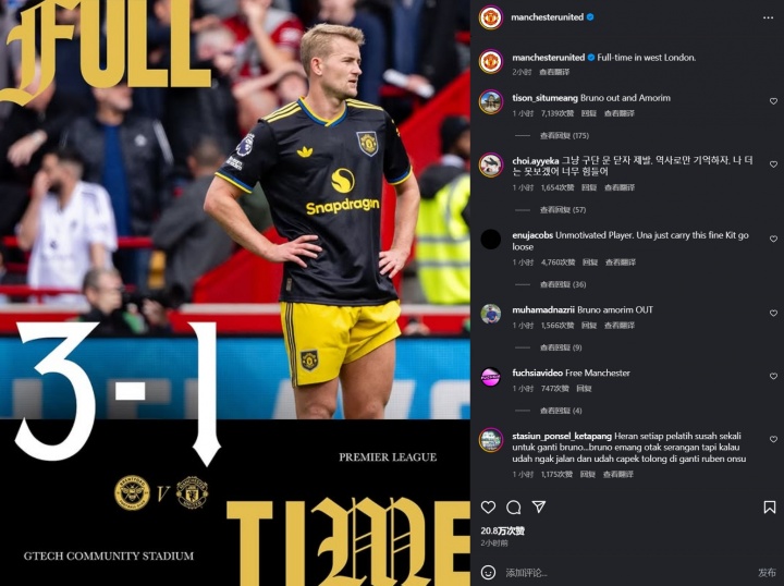 9月28日讯 曼联本轮1-3不敌布伦特福德,在上轮击败十人蓝军后,球队没能延续势头。这场失利令球迷失望透顶,这也在曼联官...