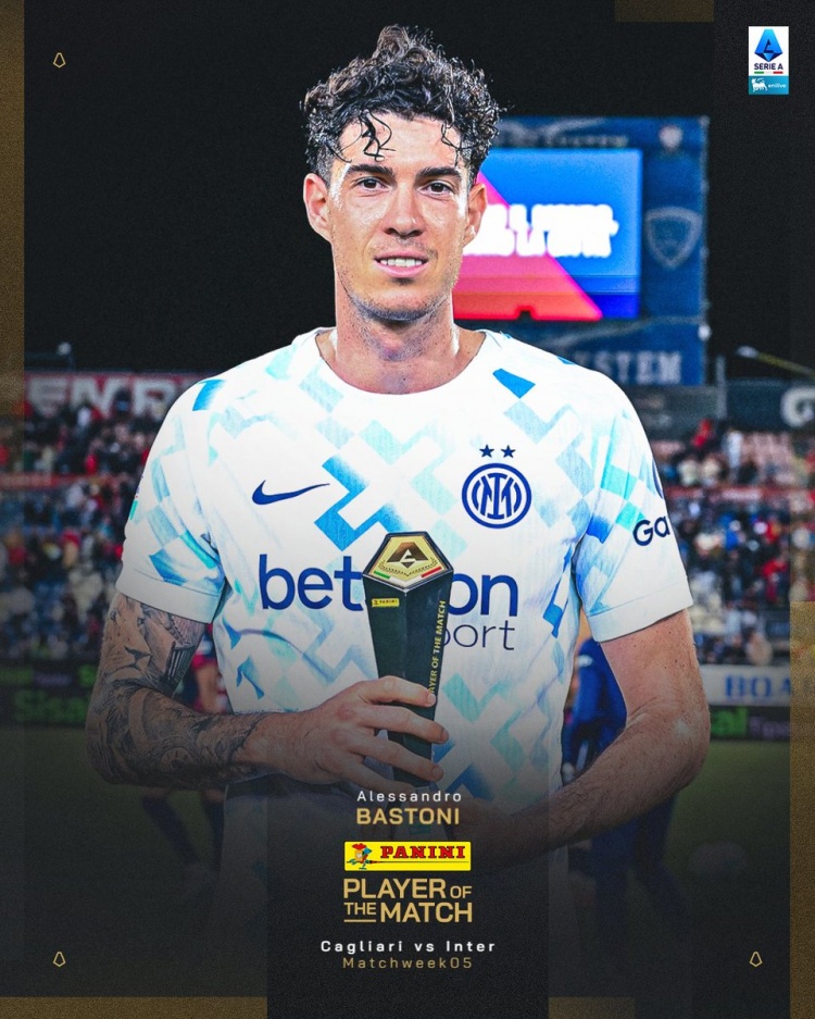 送出1次助攻!巴斯托尼当选国米2-0卡利亚里的全场最佳球员