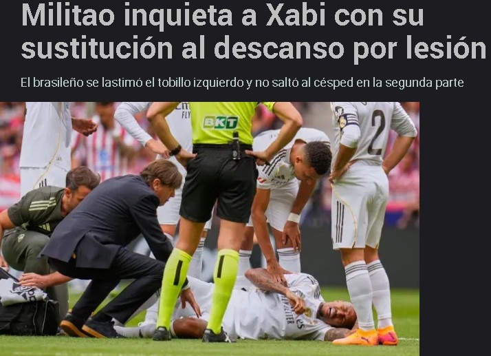 9月28日讯 在本轮西甲,皇马2-5不敌马竞。据记者Guillermo Rai报道,米利唐本场感觉左脚踝不适,预计将在明...