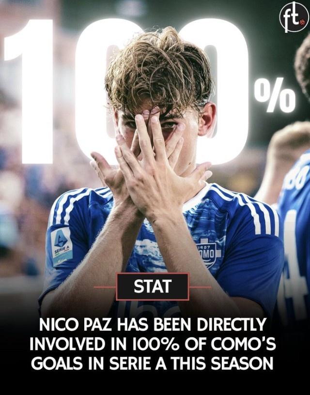 💯5轮3球3助攻!尼科-帕斯参与了科莫本赛季意甲的全部进球