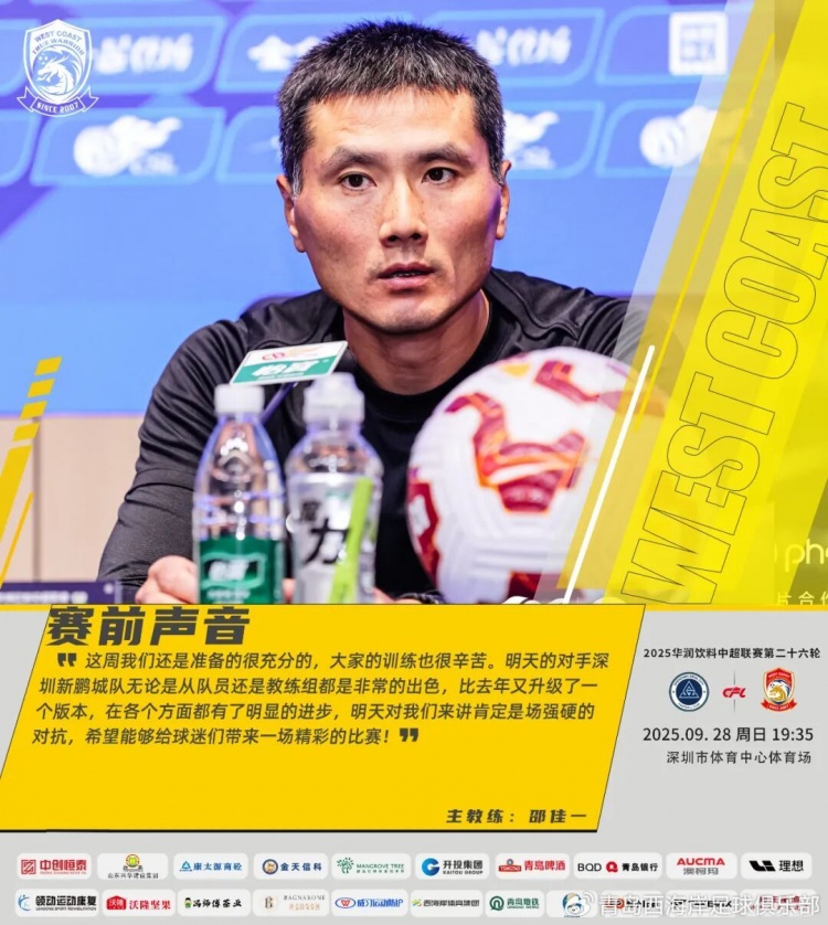 9月27日讯 中超第26轮,青岛西海岸客场对阵深圳新鹏城。赛前,青岛西海岸主帅邵佳一和球员陈柏良出席了新闻发布会。对于本...