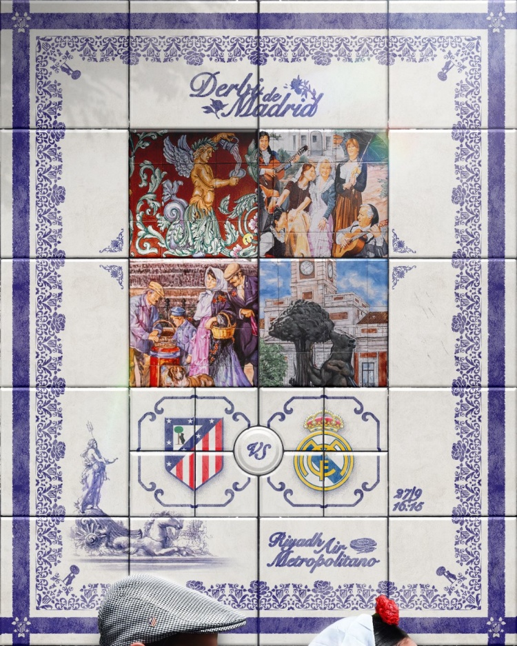 预热焦点战!马竞发布壁画复古风格德比战海报