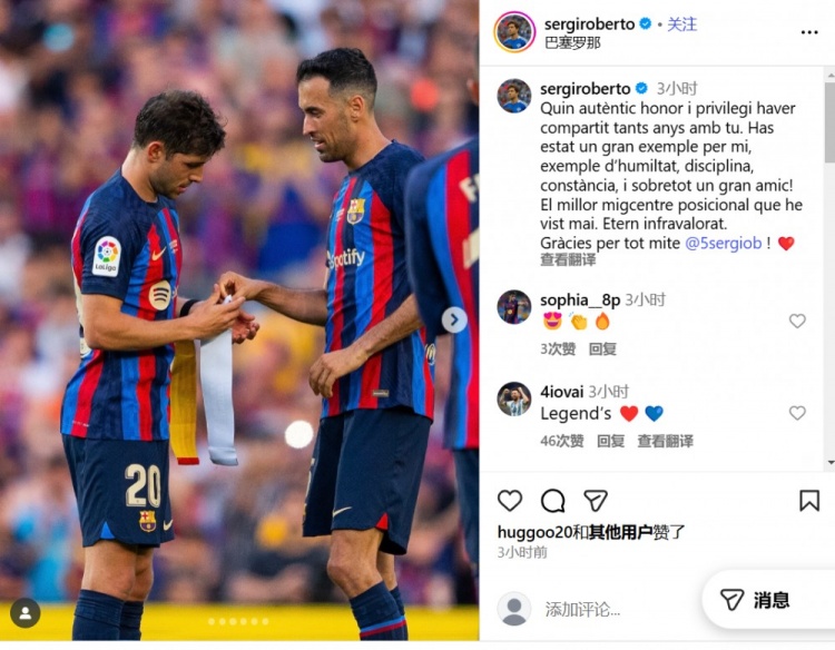 罗贝托、莫拉塔为布斯克茨送上祝福:你是最好的组织中场
