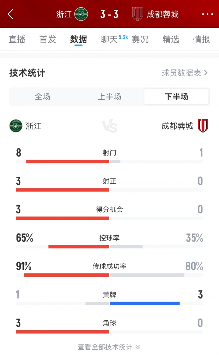 让三追三!蓉城3-3遭浙江绝平 卡列洛补时破门蓉城3球领先遭扳平