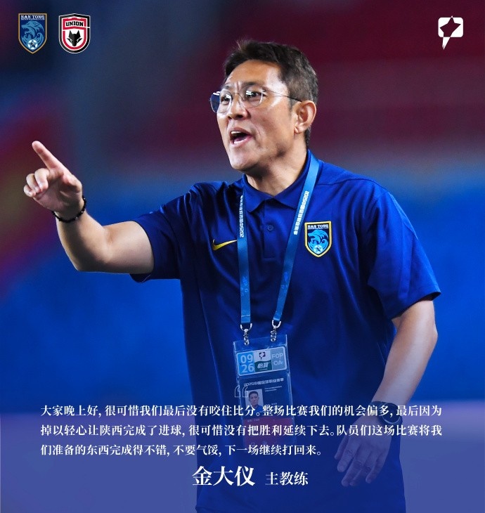 赛后声音 | 南通支云1比1陕西联合月亮泊主教练金大仪:大家晚上好,很可惜我们最后没有咬住比分。整场比赛我们的机会偏多,...