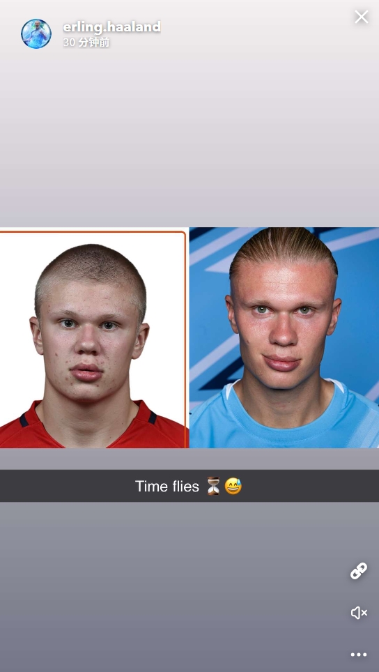 09月26日讯 哈兰德更新Snapchat动态,他晒出了自己U17欧洲杯时的定妆照和如今的对比,并配文:光阴似箭⌛😅...