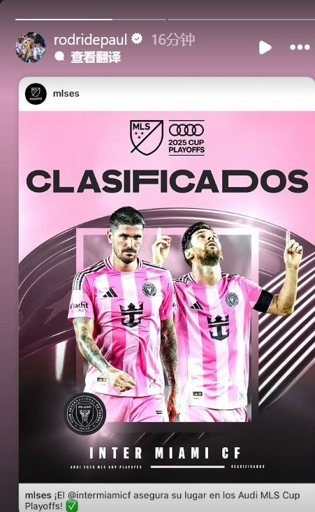 锁定季后赛,迈阿密国际中场德保罗晒海报纪念这一时刻