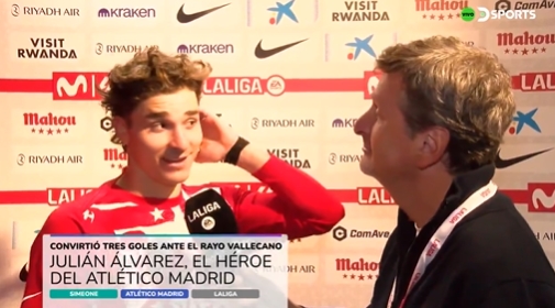 09月25日讯 西甲第6轮比赛,阿尔瓦雷斯打进3球,帮助马竞主场3-2击败巴列卡诺。阿尔瓦雷斯赛后接受采访,谈到了上一轮...
