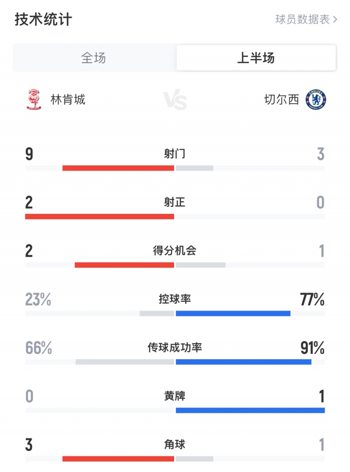 认真的?英甲队林肯城半场9射3正切尔西3射0正 如今切尔西0-1落后