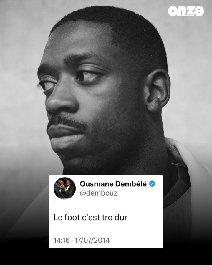 09月23日讯 28岁的登贝莱斩获2025年金球奖,有网友翻出了他2014年的一条动态。当时还在雷恩B队的登贝莱发文:L...