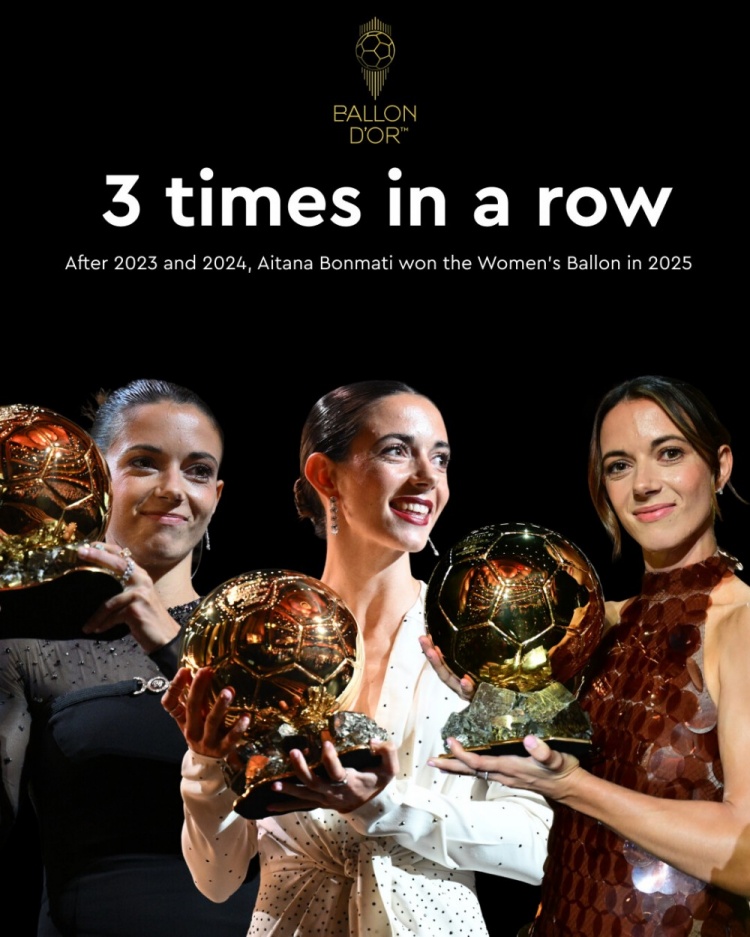 9月23日讯 2025年金球奖颁奖典礼在北京时间今天凌晨进行,巴萨女足球员邦马蒂连续三年斩获女足金球奖,亚马尔则获得科帕...