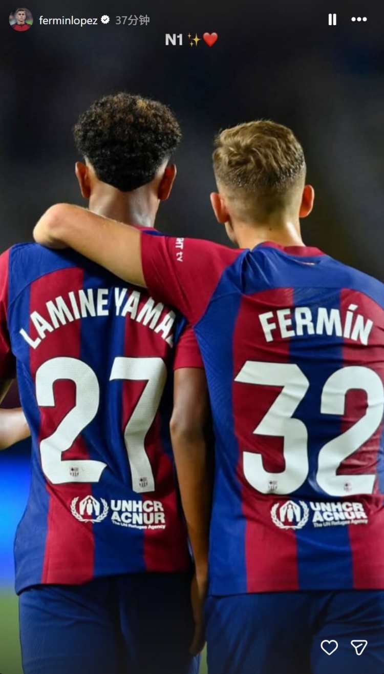 无缘金球奖,费尔明社媒晒合影支持亚马尔:你就是No1
