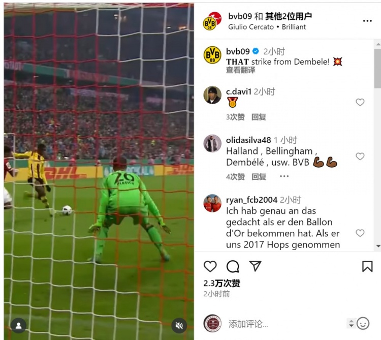 多特社媒晒登贝莱效力期间精彩进球:现在他已是金球奖得主
