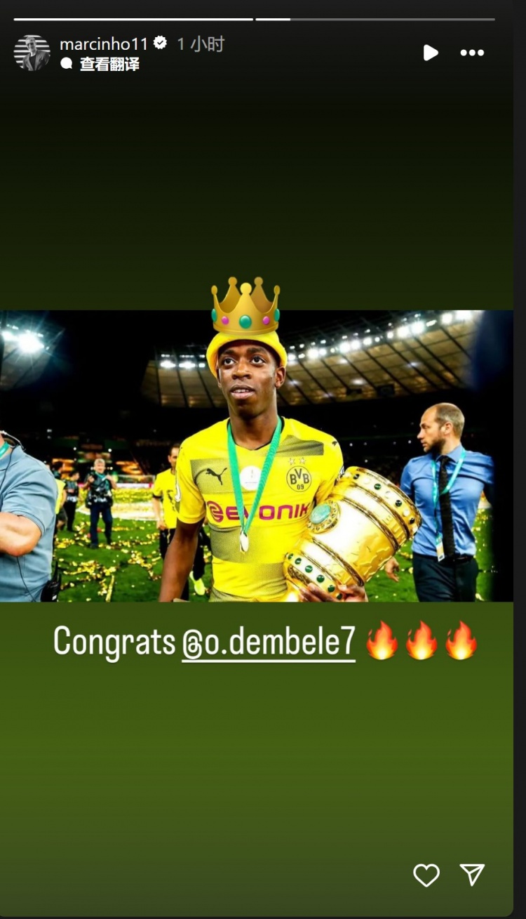9月23日讯 2025年金球奖颁奖典礼在北京时间今天凌晨进行,登贝莱获得金球奖。登贝莱老东家多特官方更新社媒动态,晒出登...