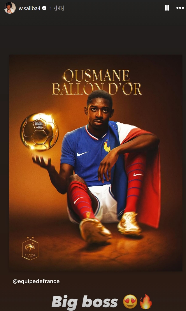 萨利巴社媒祝贺登贝莱获得金球奖:大BOSS😍🔥