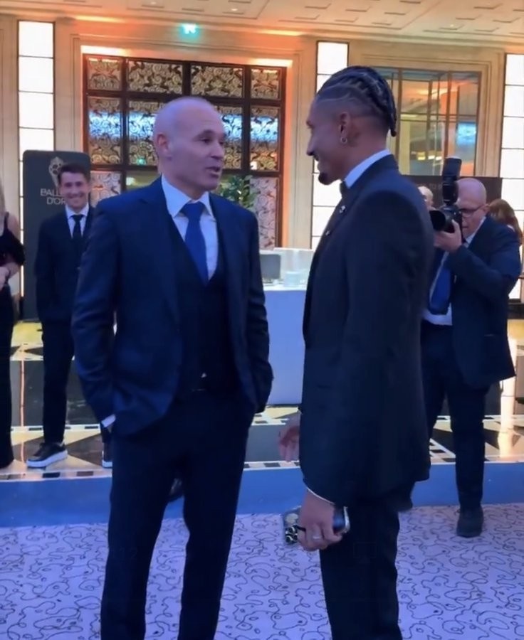 伊涅斯塔现身金球奖颁奖典礼,与拉菲尼亚交谈