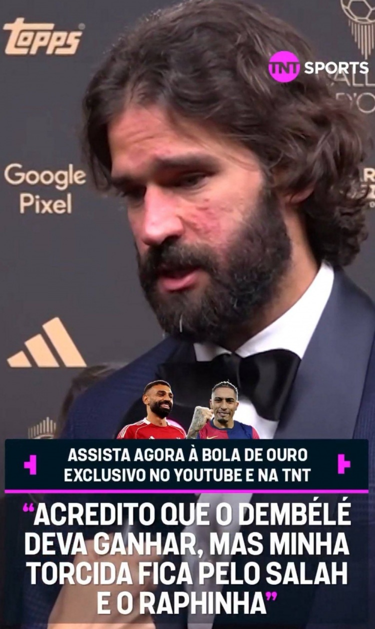 阿利森谈金球奖:登贝莱是实至名归的,但我支持萨拉赫和拉菲尼亚