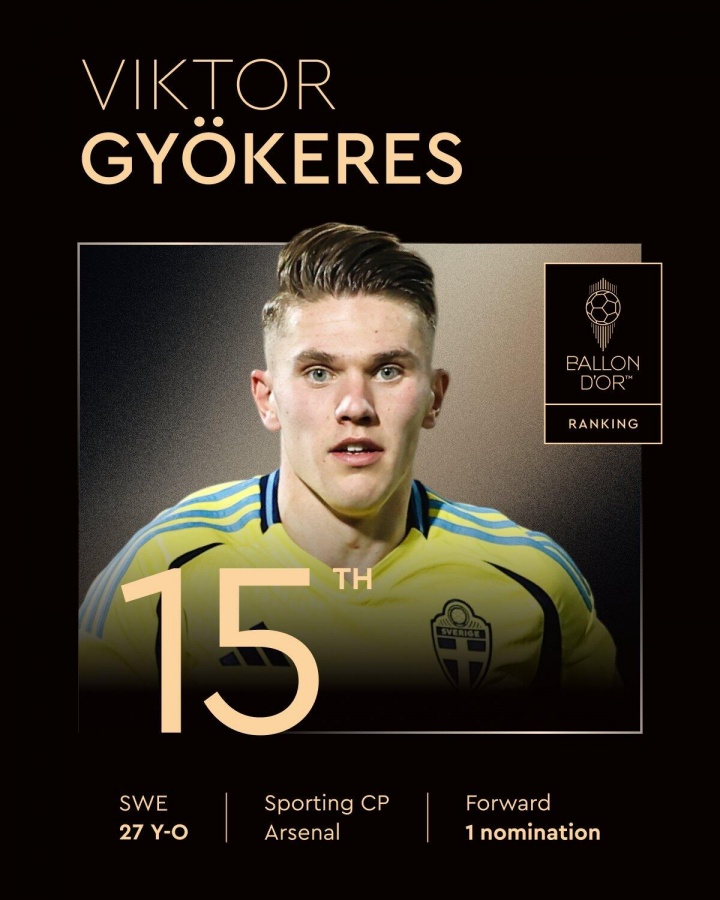 北欧锋霸首登英超!金球奖第15名:约克雷斯,生涯首次获得提名