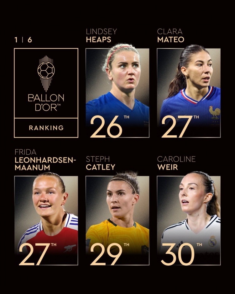 女足金球奖排名第26-30名:希普斯第26 克拉拉-马特奥第27