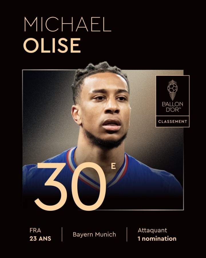 9月22日讯 2025年金球奖第30名:奥利塞俱乐部:球员上赛季代表拜仁出战55场比赛,贡献20球23助攻,帮助球队获得...