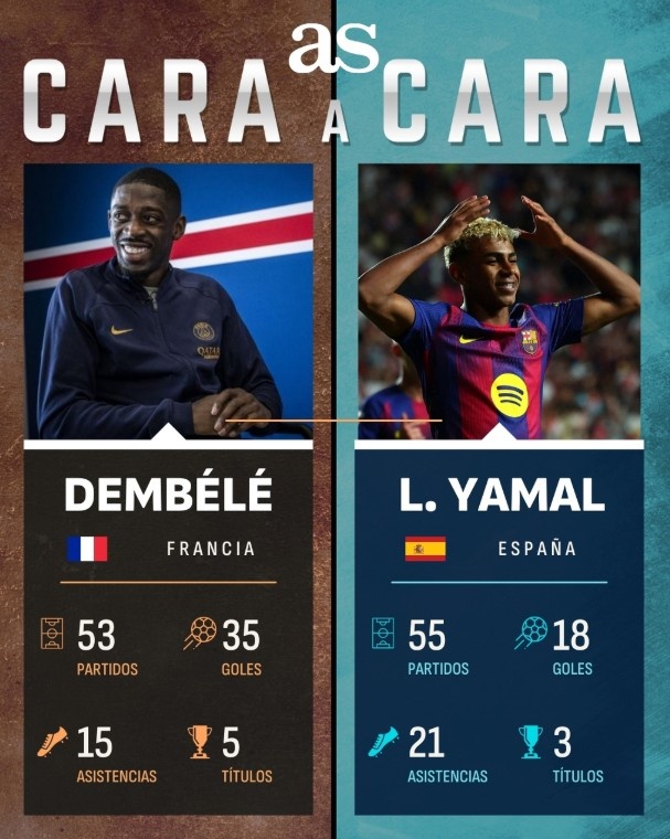 9月22日讯 2025年金球奖颁奖典礼北京时间9月23日3点在巴黎进行,《阿斯报》列出两大热门登贝莱和亚马尔的数据。附登...