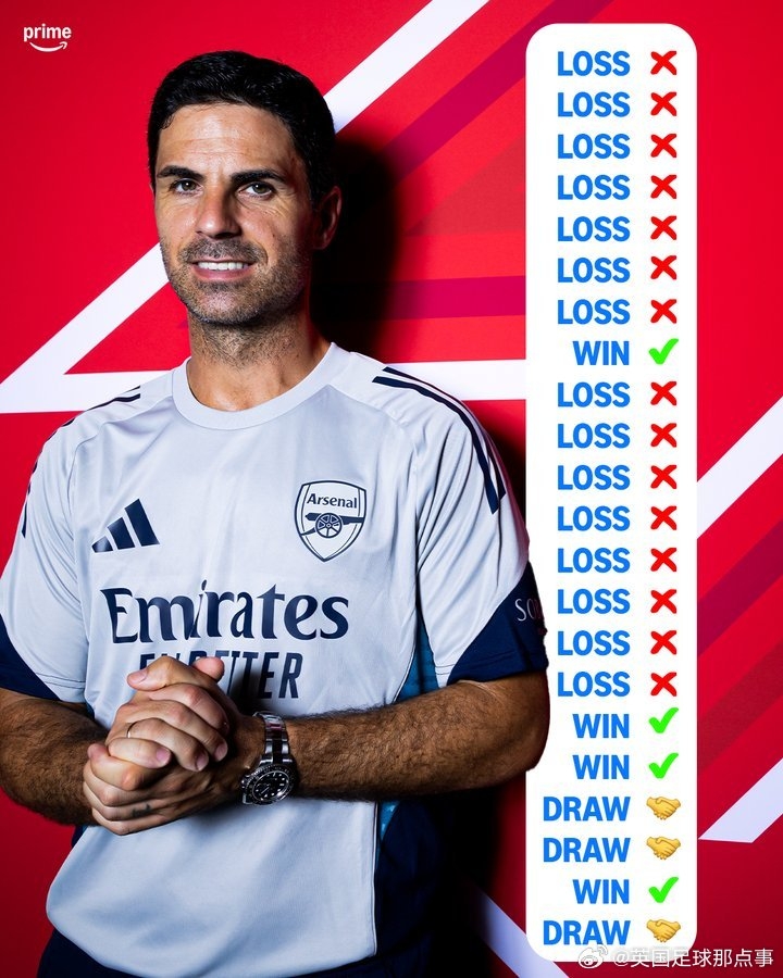 2022/23赛季以来,阿尔特塔在英超只比瓜帅少拿1分,但冠军0-6