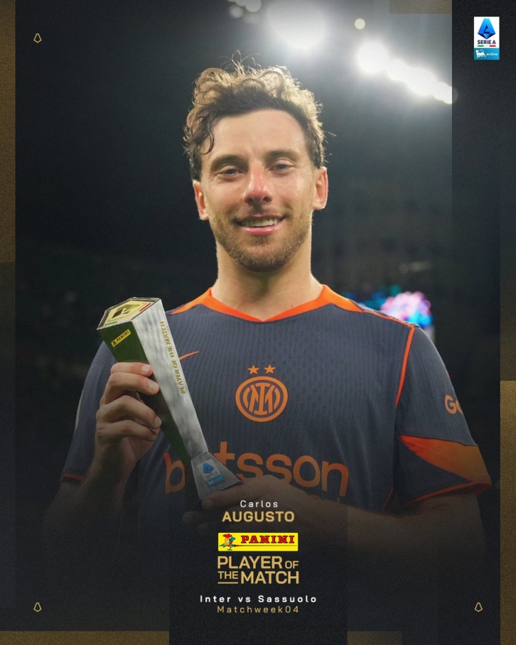 官方:卡洛斯-奥古斯托当选国米2-1萨索洛全场最佳