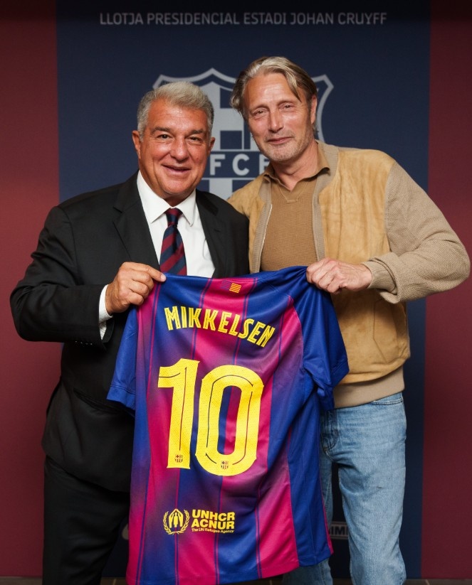 9月22日讯 西甲第5轮比赛,巴萨在主场迎战赫塔费。本场比赛,丹麦著名演员麦斯-米科尔森现身包厢观战并获赠巴萨球衣。麦斯...