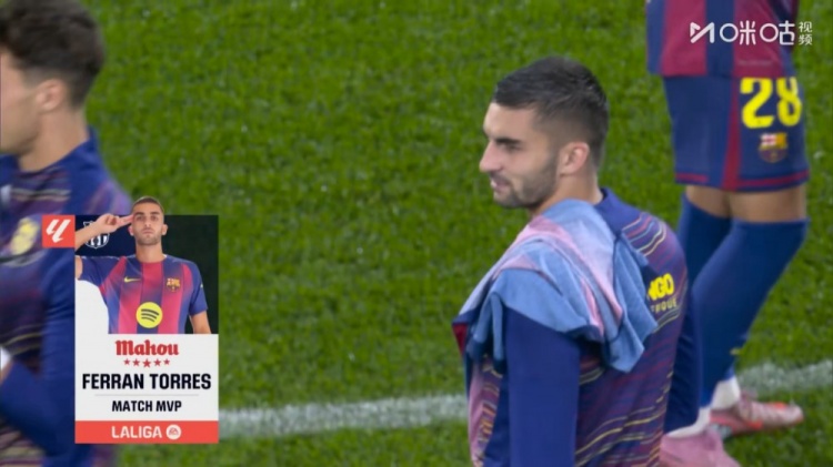 梅开二度!费兰-托雷斯当选巴萨3-0赫塔费一役全场最佳