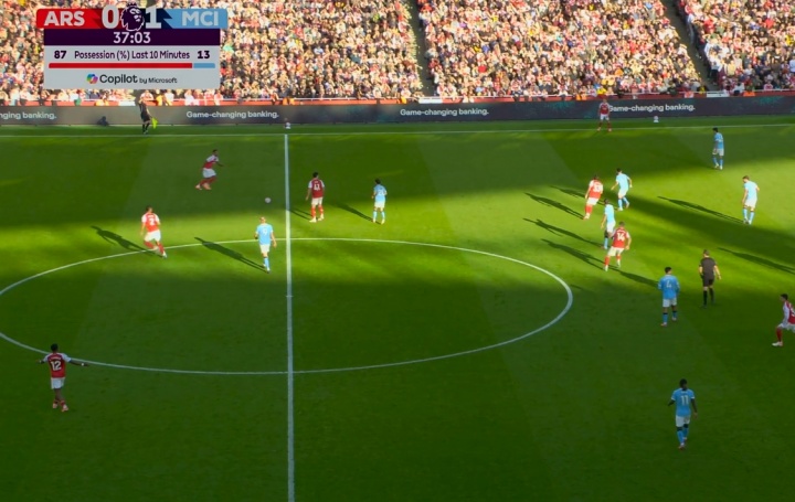09月22日讯 阿森纳vs曼城第37分钟,转播给出最近10分钟的控球率,阿森纳控球87%!但是局面打不开!...