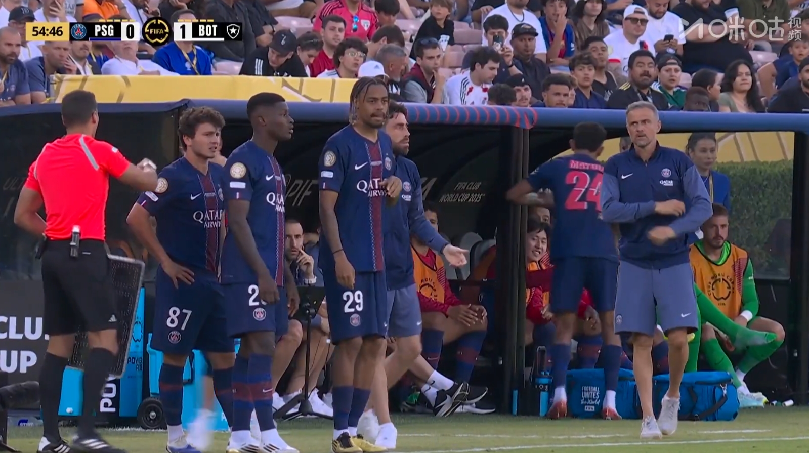 06月20日讯 世俱杯小组赛B组第二轮,巴黎vs博塔弗戈。第55分钟,巴黎换上主力,门德斯、法比安、内维斯、巴尔科拉登场...