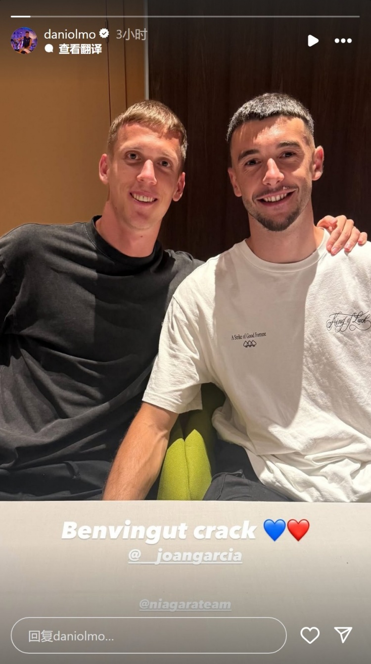 奥尔莫社媒晒与霍安-加西亚合照:欢迎你,天才💙🧡