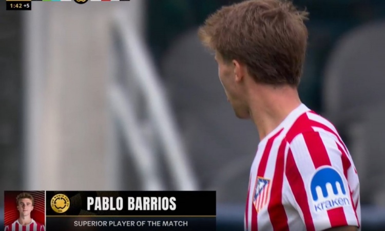 梅开二度!巴里奥斯当选马竞vs西雅图海湾人全场最佳球员