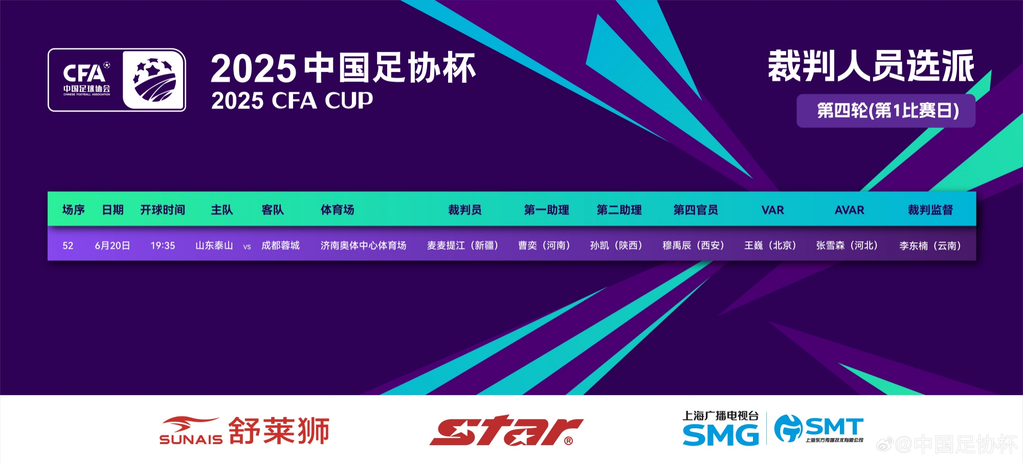 焦点大战!官方:麦麦提江执法足协杯1/8决赛山东泰山vs成都蓉城