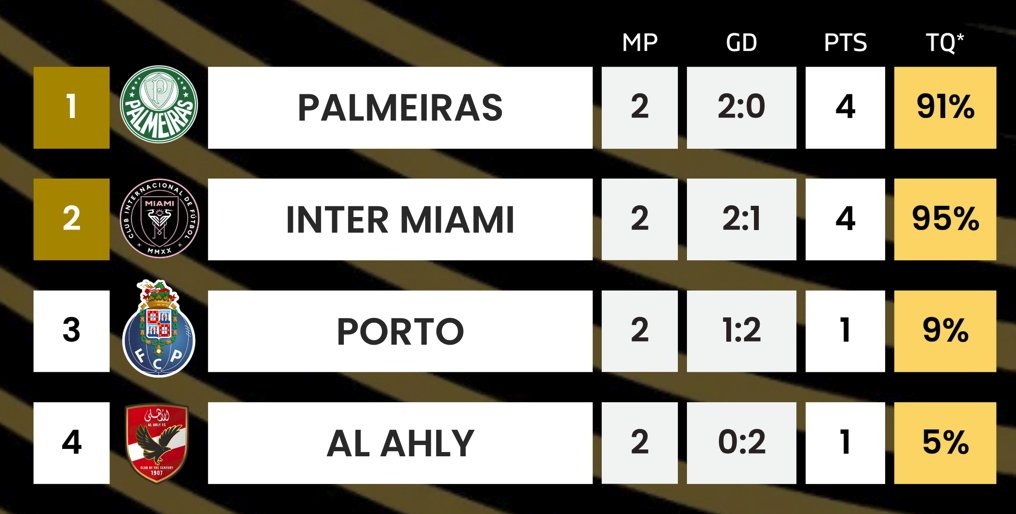 06月20日讯 世俱杯小组赛A组第2轮,帕尔梅拉斯2-0开罗国民,迈阿密国际2-1逆转波尔图。第三轮,迈阿密国际vs帕尔...