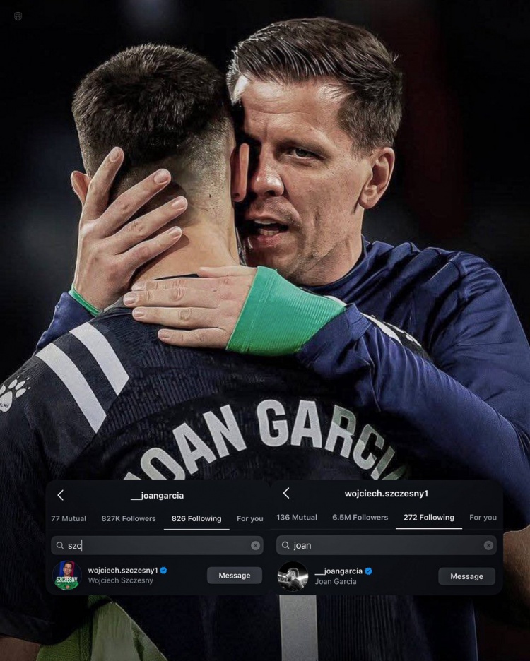 共同为巴萨效力!霍安-加西亚与什琴斯尼在社交媒体上互相关注