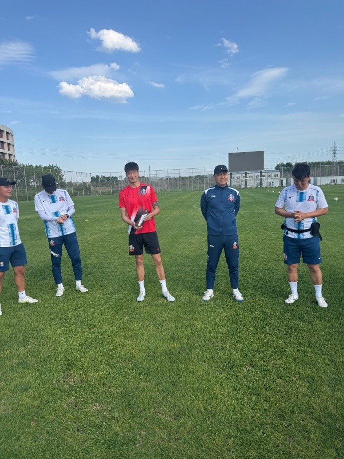 梅开二度!延边龙鼎前锋黄振飞领取中甲第10轮最佳球员奖杯
