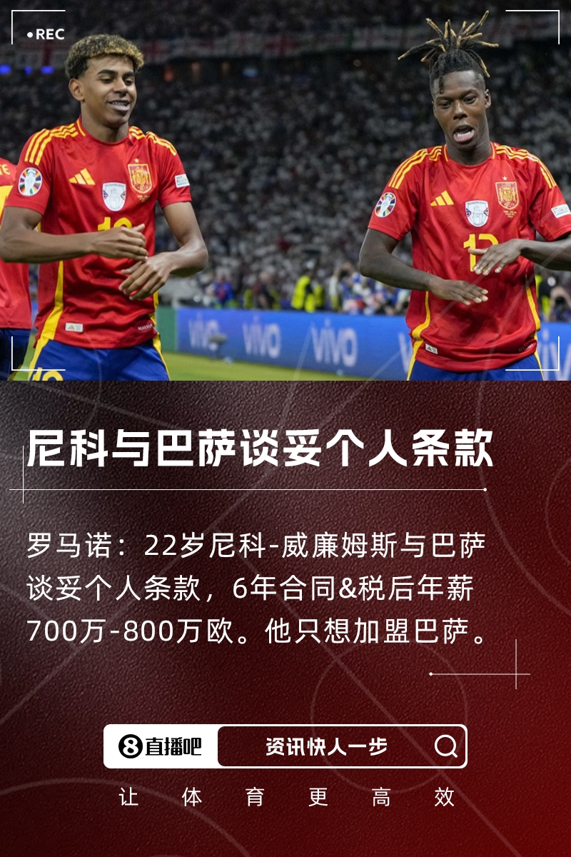 罗马诺:尼科与巴萨谈妥个人条款 6年合同&税后年薪700万-800万欧