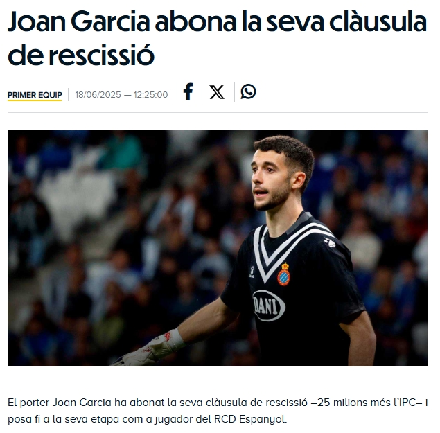 官方公告仅1句话💔西班牙人不满加西亚去巴萨,球迷视其为叛徒